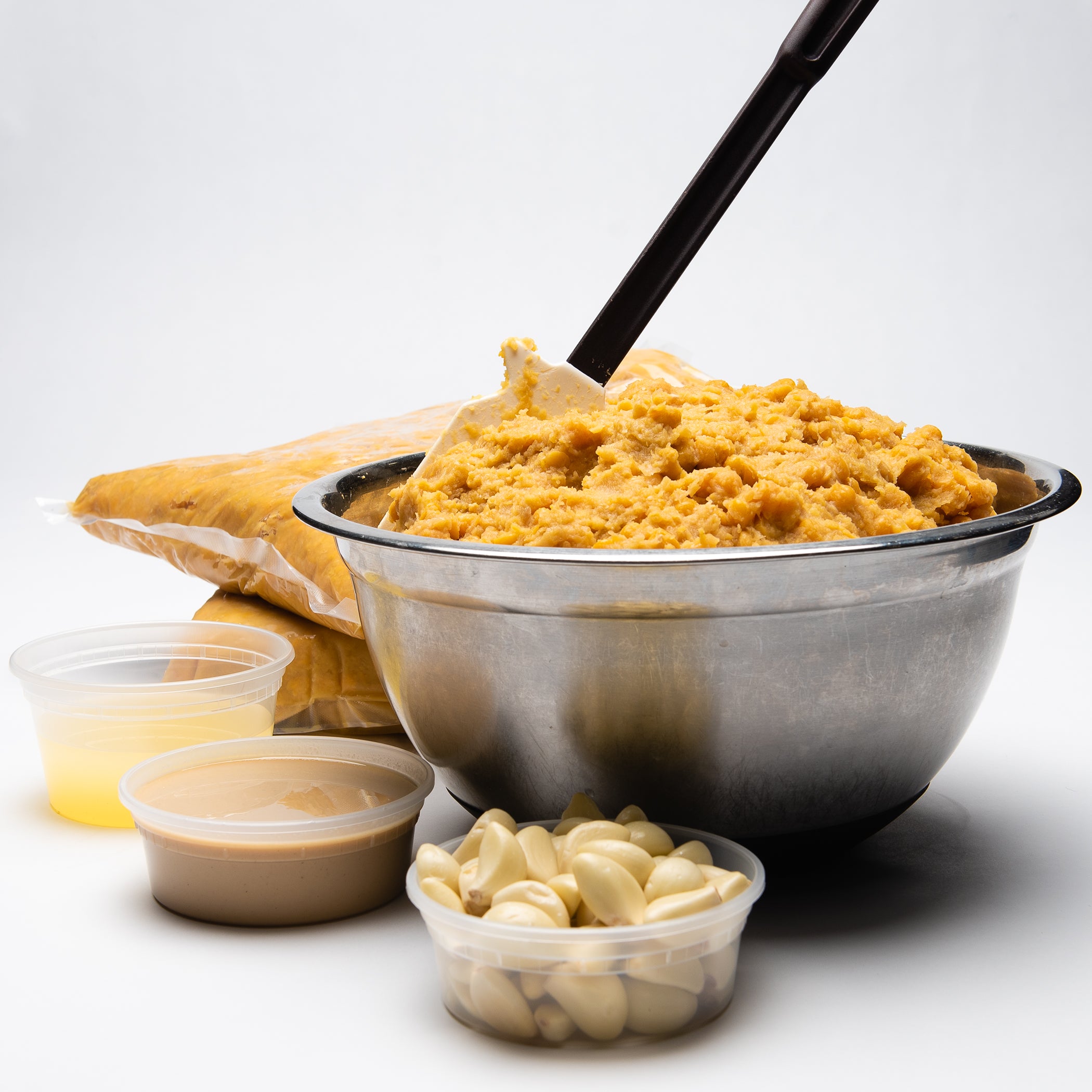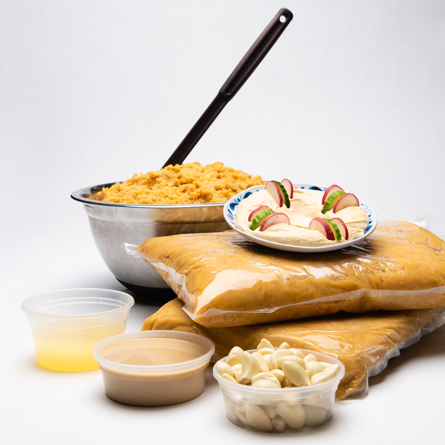 This hummus base, or chickpea mash, is expertly crafted to serve as the ideal foundation for your own customized hummus